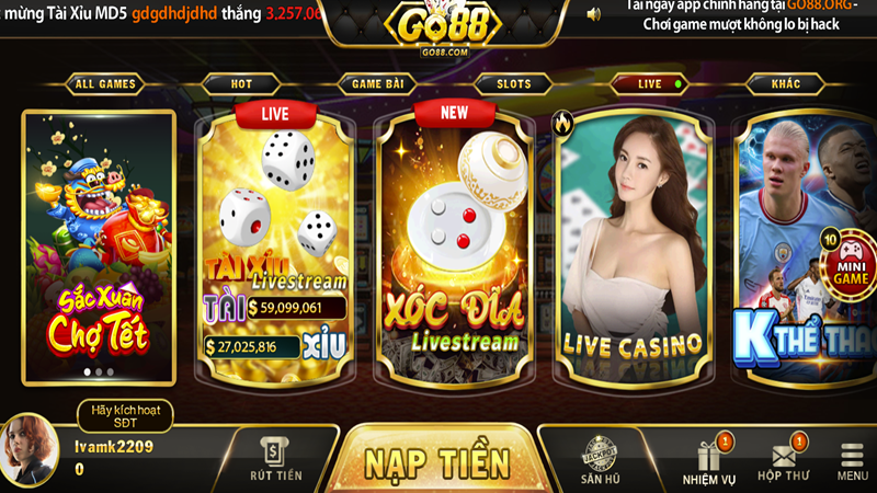 Trong chuyên mục live casino tại Go 88 sẽ bao gồm các thể loại như: Bài Baccarat, bài Rồng Hồ, Bài Blackjack. Bài Poker và Roulette. Dành cho những ai chưa biết. Thì đó là những thể loại giải trí chỉ có tại những sòng casino lớn tại Ma Cao hay Las Vagas. Tại Việt Nam, rất ít nào đủ lớn để có thể đưa những sản phẩm đẳng cấp như thế này về để phục vụ bet thủ.