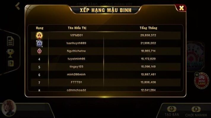 Quay lại đại sảnh, trên thanh công cụ anh em hãy nhấn chọn “Game bài”. Sau đó kéo xuống và ấn vào biểu tượng của game bài Mậu Binh